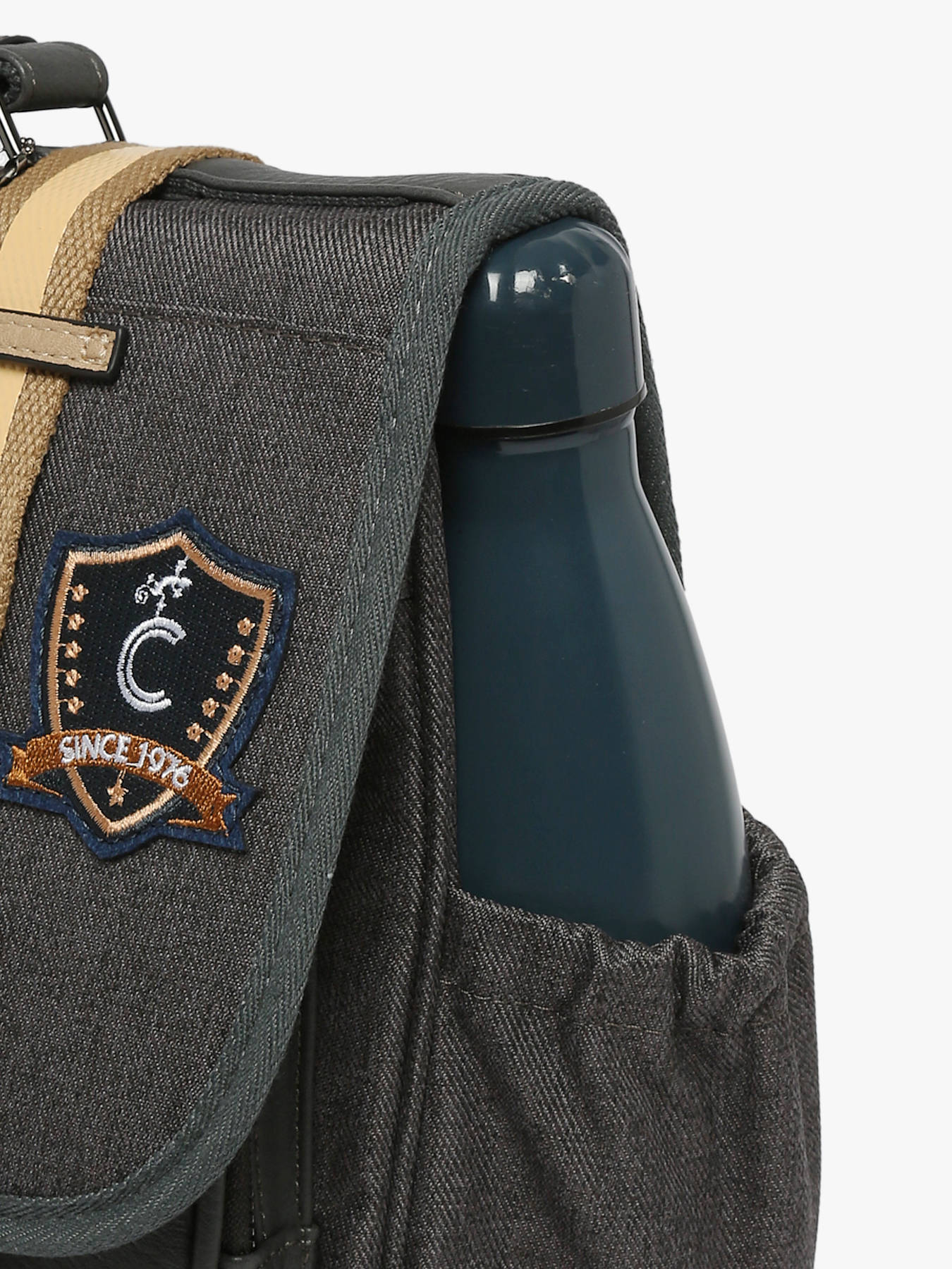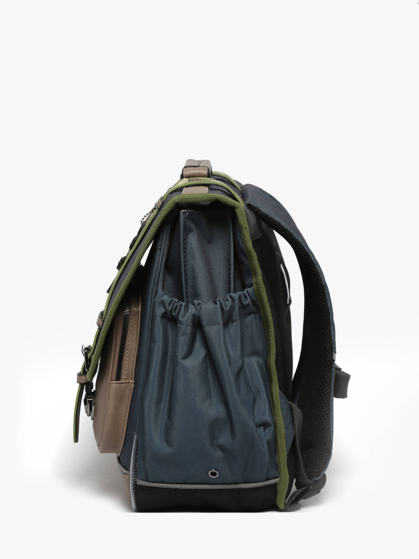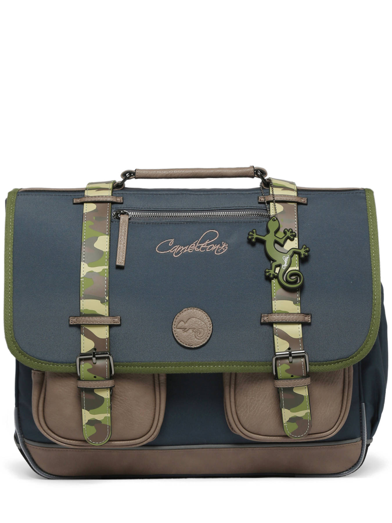 Deze schooltas uit de Vintage collectie van het merk Caméléon heeft een breedte van 41 cm. Ideaal voor vanaf het 4de leerjaar! Dit model heeft een duidelijke vintage look, dankzij twee voorvakjes en de riempjes met gespen. De schooltas beschikt over drie ruime compartimenten, die schriften (24x32 cm), mappen en schoolboeken van A4 formaat kunnen bevatten. Onder de overslagflap bevindt zich ook een uniek opbergvakje, voorzien van een gratis liniaal. De twee kleine ritsvakjes vooraan zijn perfect om een snack of andere kleine spulletjes in te stoppen. Dit model beschikt ook over een naamlabel aan de achterzijde, en kan makkelijk gesloten worden dankzij een dubbel kliksysteem. Voor optimaal comfort zijn de rugzijde en schouderbanden extra gewatteerd. Dankzij enkele reflectoren kan uw kind zich ook veilig in het verkeer begeven. Vintage op z'n mooist!