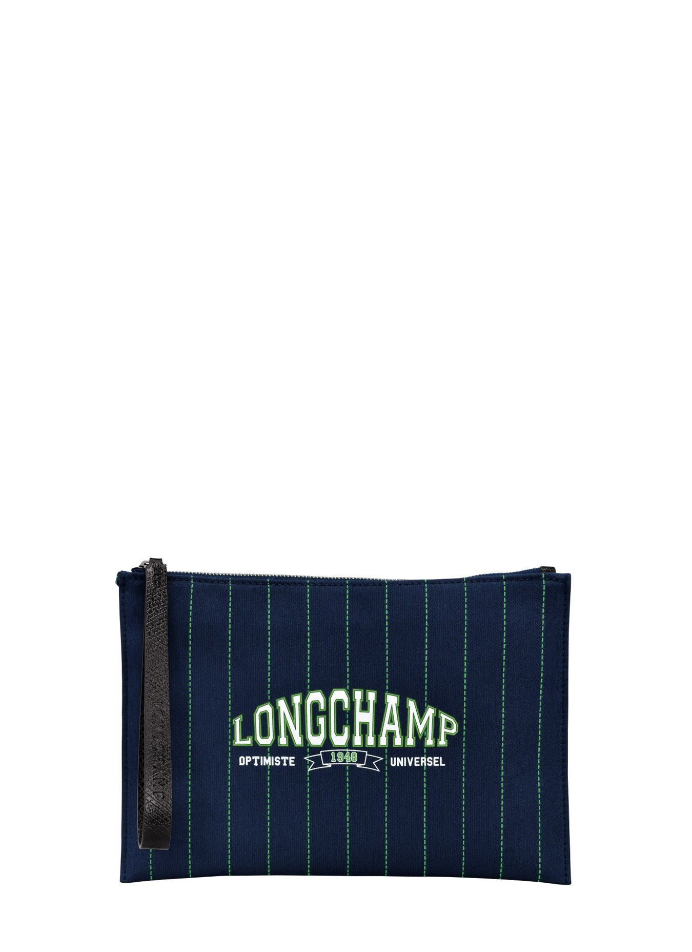 Het Essential Longchamp ritsetui, vervaardigd uit katoen en verfijnd afgewerkt met leren details, is het ideale accessoire voor een spontane uitstap. Dankzij de veilige ritssluiting bergt het uw essentials met elegantie op en biedt het een praktische indeling met een open vakje en een ritsvak, waardoor alles overzichtelijk blijft. Het polsriempje maakt het mogelijk om het ritsetui comfortabel om de pols of in de hand te dragen, of om het eenvoudig in een grotere tas te schuiven voor veelzijdig gebruik. De ESSENTIAL-collectie van Longchamp combineert sobere lijnen met tijdloze elegantie voor het dagelijkse leven en is geïnspireerd door de Parijse spirit die de Longchamp-vrouw vol energie begeleidt in al haar escapades, of die nu lichtvoetig of ambitieus zijn. ESSENTIAL vereenvoudigt haar leven met verfijning en biedt praktische oplossingen voor elk doel, persoonlijk of gedeeld. Dit seizoen presenteert Essential Toile zich in een marineblauwe katoenen canvas, verfraaid met tennisstrepen in het stralende Lumière-groen, een subtiele knipoog naar een sportieve, chique en tijdloze stijl, terwijl het XXL-zeefdruklogo van Longchamp de waarden van universaliteit en optimisme weerspiegelt die zo kenmerkend zijn voor het huis. Dit ritsetui belichaamt perfect de harmonie tussen functionaliteit en elegantie.