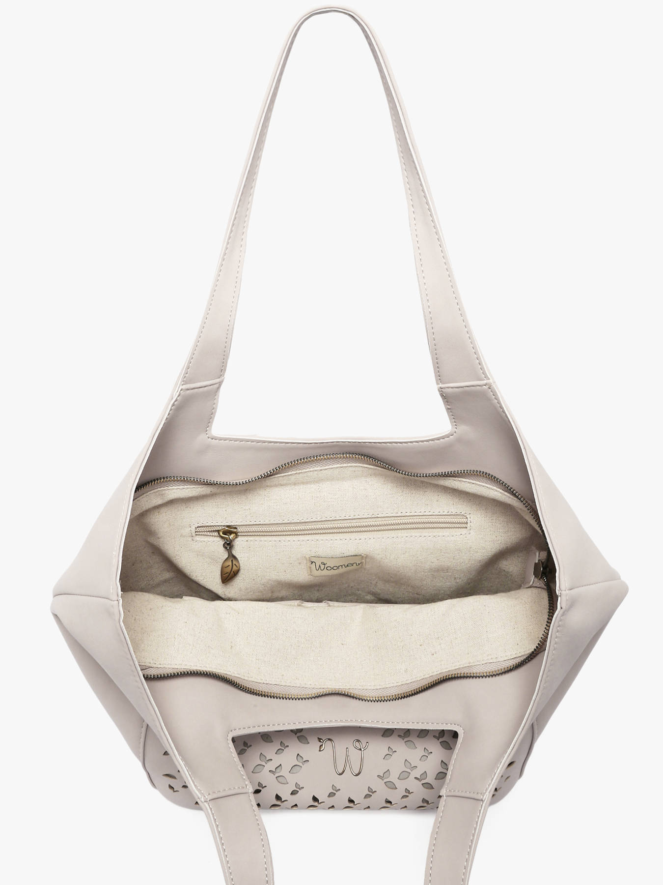 De schoudertas WOOMEN formaat M uit de lijn Zamia combineert stijl, praktisch gebruik en duurzame betrokkenheid. Het hoofdmateriaal van polyurethaan, bestaande uit 58% gerecyclede materialen en gevoerd met katoen en linnen, biedt lichtheid en stevigheid. De opengewerkte motieven in de vorm van kleine blaadjes geven het model een origineel en verfijnd vleugje. Hij beschikt over een ritssluiting, een ritsvak aan de achterkant, en binnenin een ritsvak en een steekvak om je essentials eenvoudig te organiseren. Het gouden resinelogo maakt het ontwerp compleet, waardoor deze tas een elegant en functioneel accessoire is, ideaal om je dagelijkse outfits te completeren.