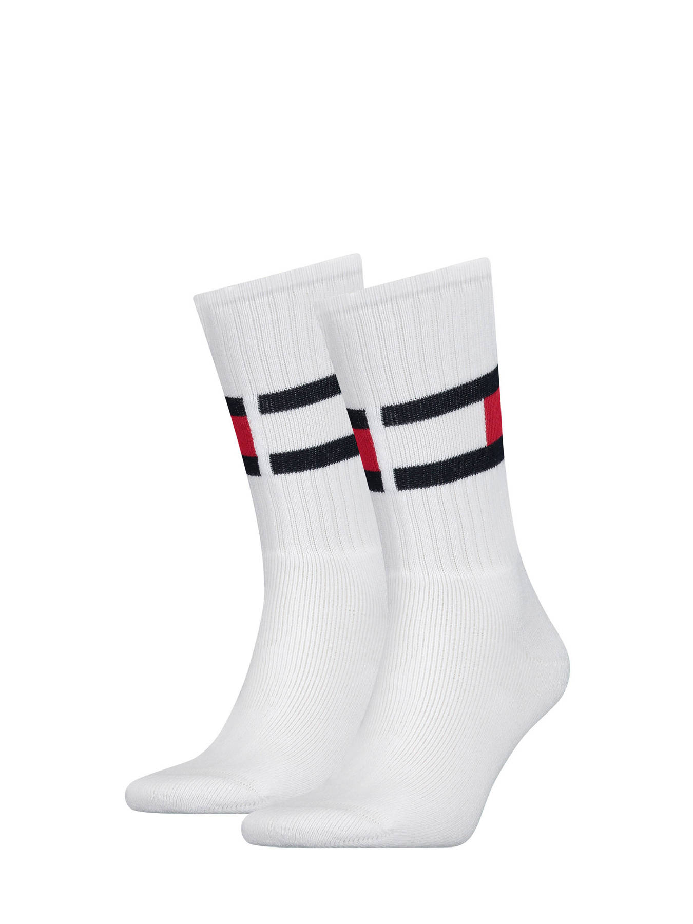 Deze sportsokken van Tommy Hilfiger met ribgebreide boorden zijn afgewerkt met het iconische wit-rood-blauwe logo van het merk. Een echte klassieker! De sokken zijn gemaakt van 80% katoen, 18% nylon en 2% elastaan.